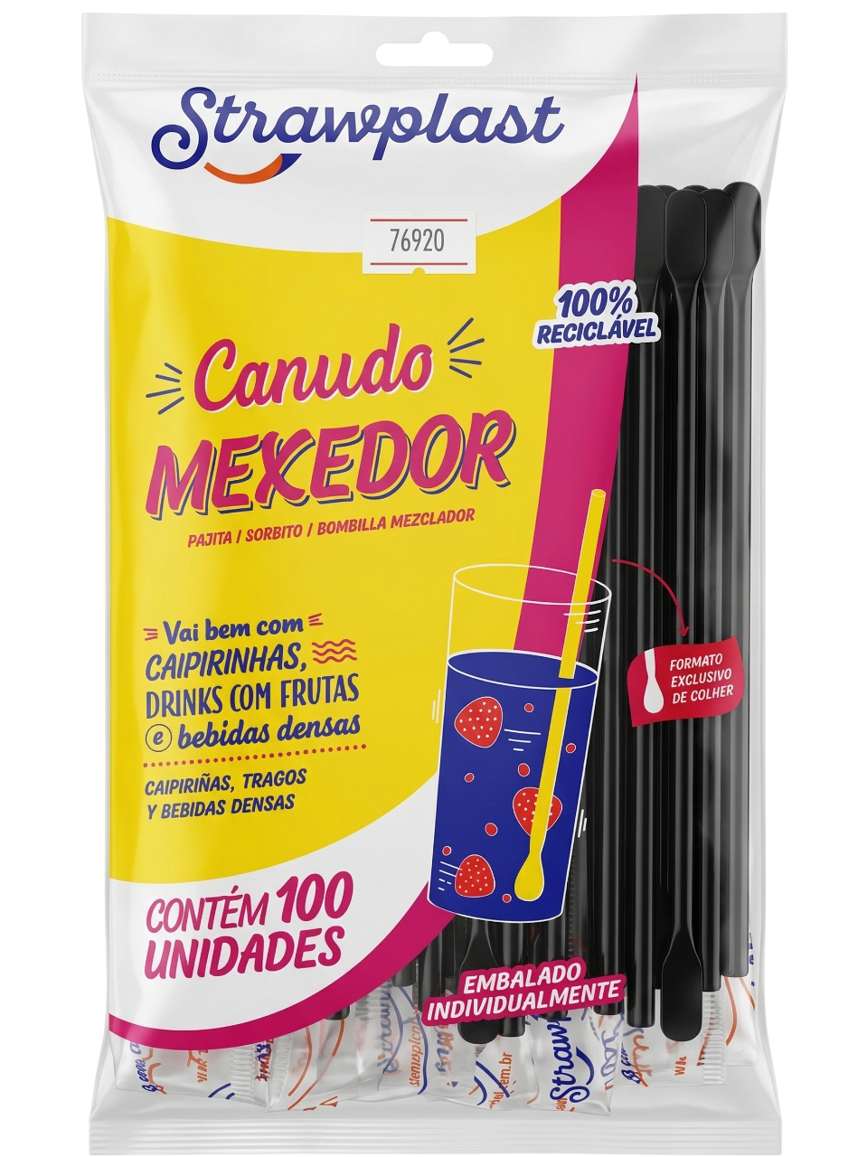 Com função 2 em 1 (canudo + mexedor), ele facilita o dia a dia no atendimento e ainda garante mais higiene, pois cada unidade é embalada individualmente em sachê.